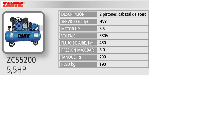 | [8262] COMPRESOR 200 LTS 5.5 HP 380 volts ZANTIC |  | | | Consultar |  |