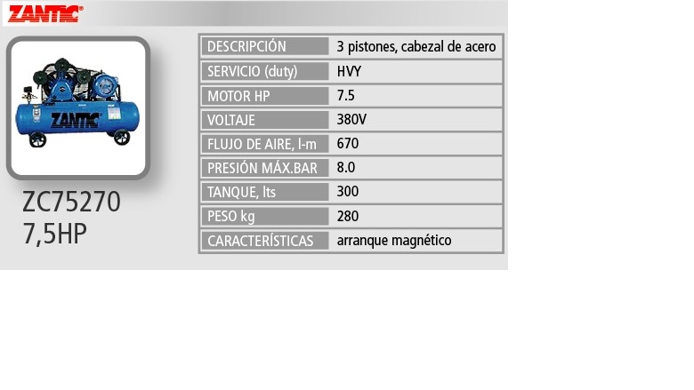 | [8265] COMPRESOR 270 LTS - 7.5 HP - 380 volts ZANTIC |  | | | Consultar |  |